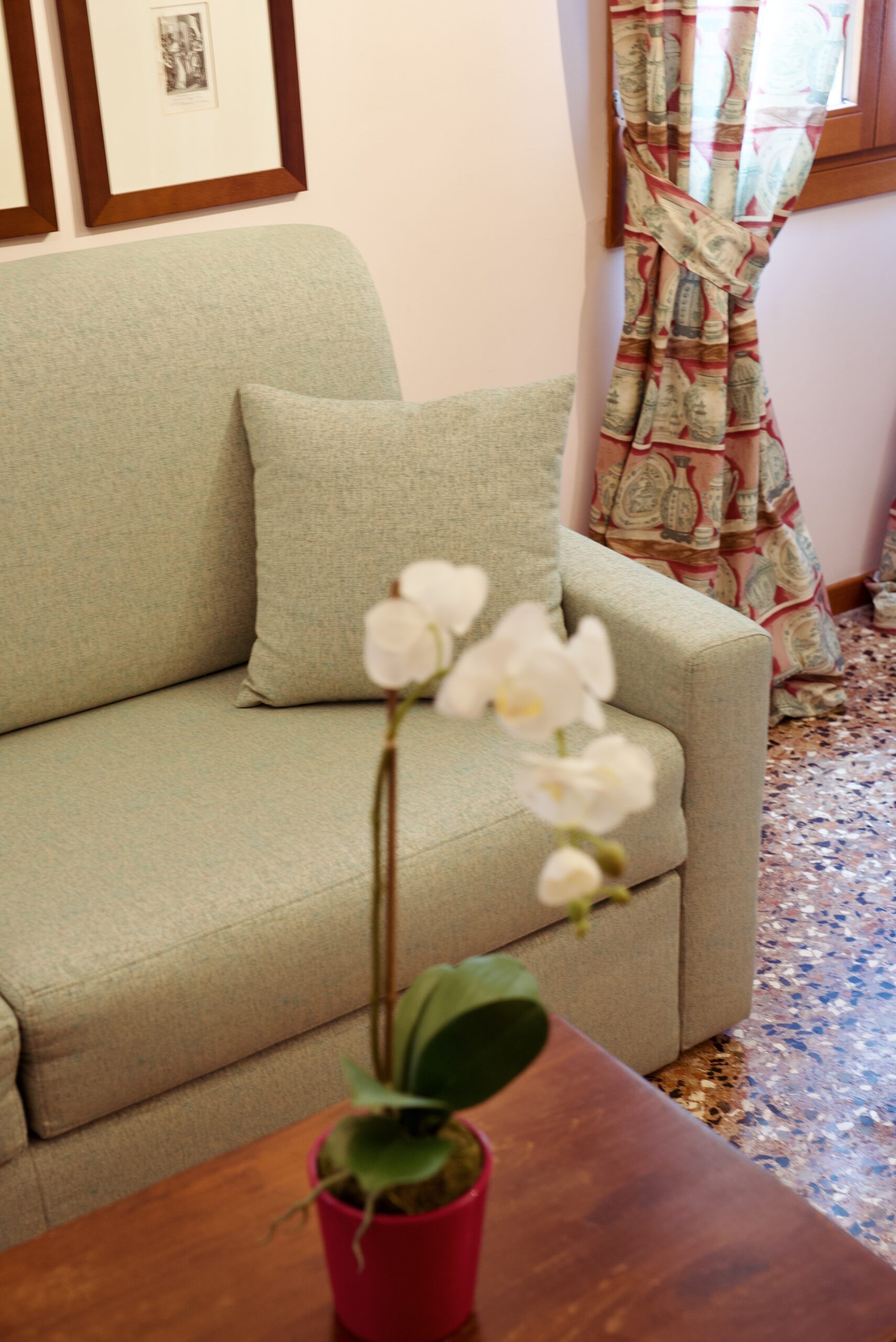 Die antiken Möbel wurden in typisch venezianischen Pastellfarben neu veredelt. Sie werden sich wie in dem Wohnsitz eines antiken Dogen fühlen. Dieser wird durch ein Fresko verschönert, das seine Inspiration im 16. Jahrhundert findet.